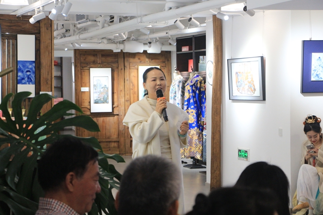 随后,中华文化促进会传统文化分会副秘书长廖盈佳通过系列历史实物图片,向中外观众展示了中国传统服装的演变过程,以及文化内涵。