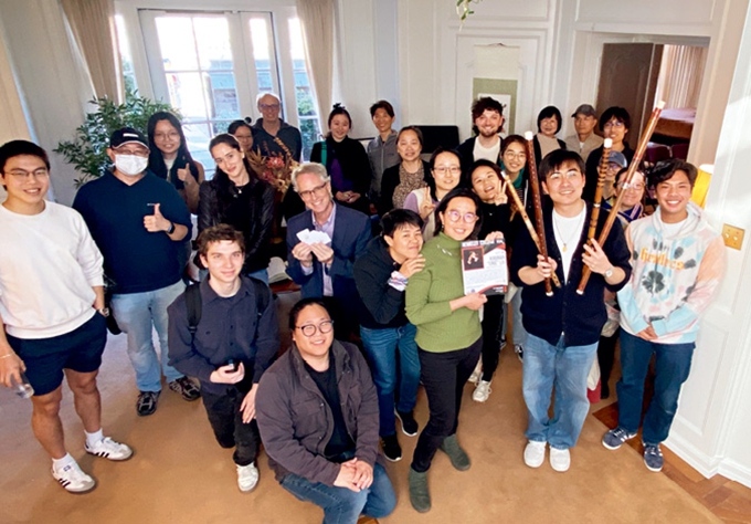 演讲结束后,刘笑然仍不断地与这支民乐团保持着密切联系,持续为团员提供专业辅导。从练习方法到演奏细节,他耐心分享,帮助乐手提升音准与表现力。为了保障教学与演出质量,他还特意为他们从国内定制了一批竹笛:“中国竹笛对选材和工艺要求很高,国外很难达到这样的标准。我准备了适配不同曲目的乐器,也方便根据学生的特点因材施教。”