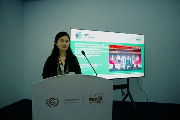 前不久,《联合国气候变化框架公约》第三十次缔约方大会(COP30)在巴西帕拉州贝伦市召开,中国国际文化艺术中心代表傅缤卉于当地时间2025年11月20日发表演讲,向世界阐述中国文艺工作者如何以文化为驱动力,推动“中国制造”和“中国品牌”参与国际合作,为全球减碳提供切实有效的中国解决方案。傅缤卉指出,在技术、政策和资金等传统议题之外,激发民众的文化自觉与情感共鸣,是实现全球气候治理目标的重要补充。