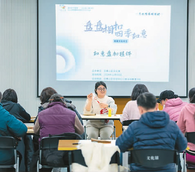 老师在北京市石景山区文化馆教授盘扣技艺。