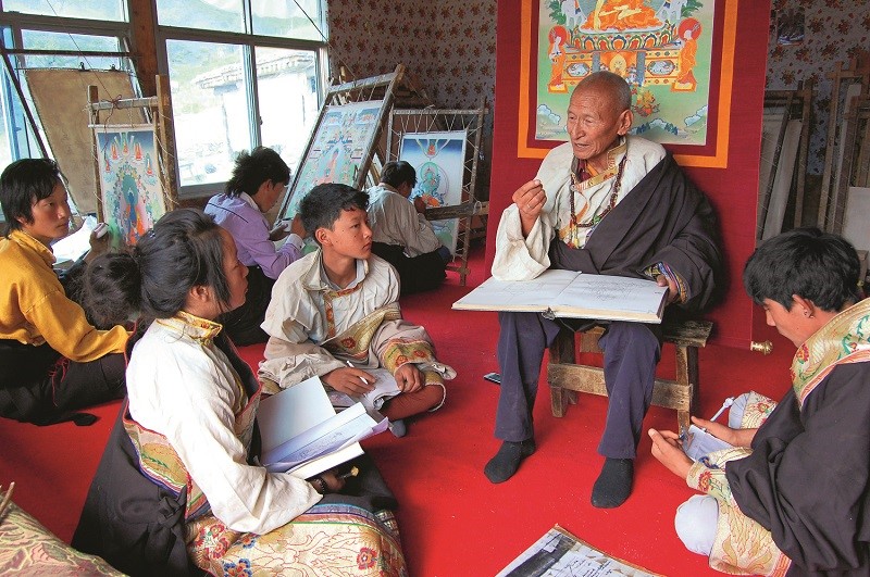 刘冬梅认为这种制度化传承模式为唐卡艺术发展提供了坚实基础:一方面,院校聘请优秀画师任教,既保障了师资的专业性,又拓宽了技艺传播渠道;另一方面,规范化的招生培养机制解决了生源问题,提高了唐卡从业者文化水平,同时为其提供了学历认证,增强了就业竞争力。不过,当前教学实践中,尽管小学、中学、大学、研究生都有唐卡专业,但是学段还未能有效贯通,导致部分大学阶段仍零起点学习唐卡基础技艺等现实挑战。