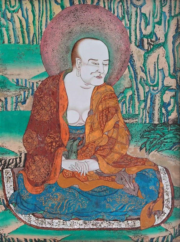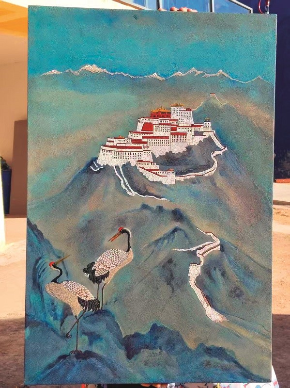 “造像量度”在当代创作中扮演着传统与创新的平衡器角色。画师们在尝试生态题材、民俗题材等新内容时,仍要以度量经为基础进行创作。以勉萨派唐卡国家级非遗传承人罗布斯达的《唐蕃慧心》为例,作品虽然借鉴了国画写生手法融入古代建筑与山水元素,但佛像部分依然严格遵循传统度量规范。这种“厚植基本功—融合创新”的模式,确保了唐卡艺术在发展中不失本色。“造像量度不是僵化的规则,而是内化后的创作自由。”刘冬梅说。
