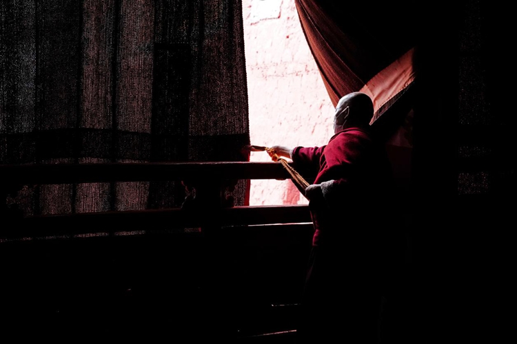殿堂内的僧人正在进行安全巡视保证一切正常
