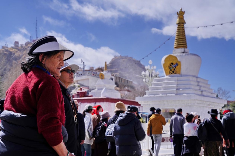 西藏人民来到布达拉宫广场近距离欣赏这座雪域明珠