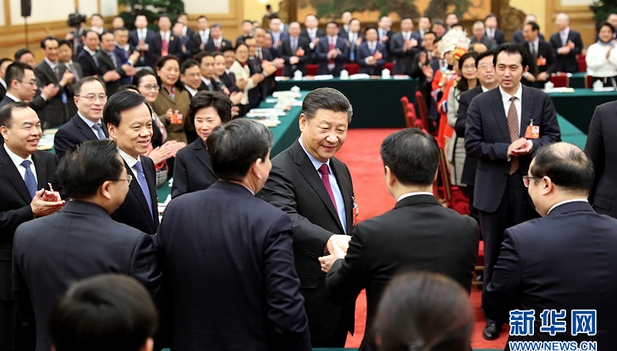 3月12日上午,中共中央总书记、国家主席、中央军委主席习近平出席十三届全国人大一次会议解放军和武警部队代表团全体会议并发表重要讲话。