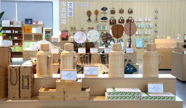 安吉县“以竹代塑”展示中心展出的工艺竹制品