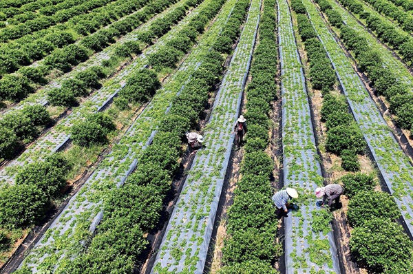 2025年7月22日,江西省吉安的一处中药材种植园里农民在忙碌着。绿色产业不仅帮助当地农民增加收入,也为实现乡村振兴注入了新动力