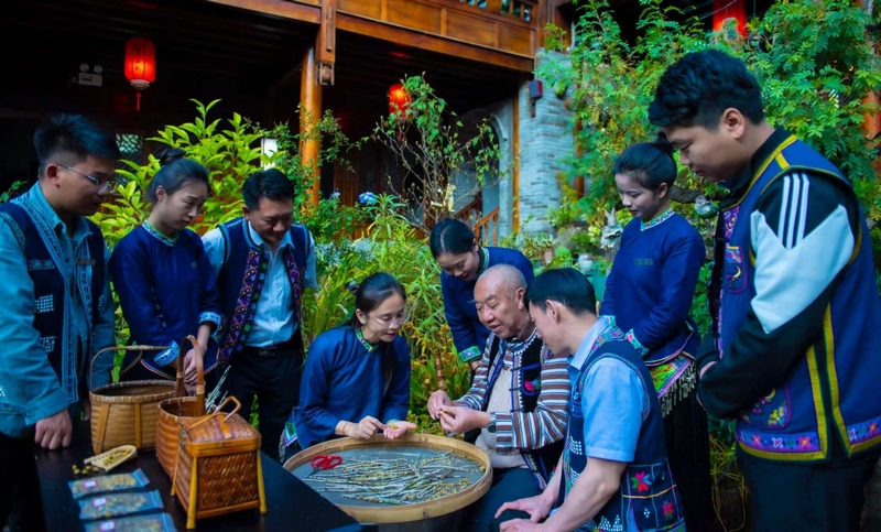 西风斗是将铁皮石斛的鲜条烤制半干,人工将它拧成一个像螺旋一样的东西,这是是老祖宗传下的手艺。文山州级非遗传承人张科长边演示边说,这门手艺不仅让乡亲们实现增收,更让老祖宗的智慧活在了当下。更令他自豪的是,这项技艺正通过非遗工坊”“非遗研学走进校园:我们不只是把西风斗这样的非遗技艺带进课堂,孩子们创作出来有特色的作品,我们也会帮助他们申报非遗。”2024年,凌垭已通过非遗研学带动2000余名学生了解、学习传统技艺。