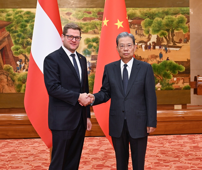 赵乐际表示,在习近平主席和范德贝伦总统战略引领下,中奥关系内涵不断丰富,各领域合作持续推进。今年是中奥建交55周年。中方愿同奥方落实两国领导人重要共识,照顾彼此核心利益和重大关切,打造绿色转型、数字经济等领域合作新亮点,加强人文交流,促进民心相通,维护多边主义,推动中奥友好战略伙伴关系深入发展。中国全国人大愿同奥议会加强交流,分享立法、监督工作经验,营造务实合作法治环境。赵乐际还介绍了“十五五”规划纲要有关情况。