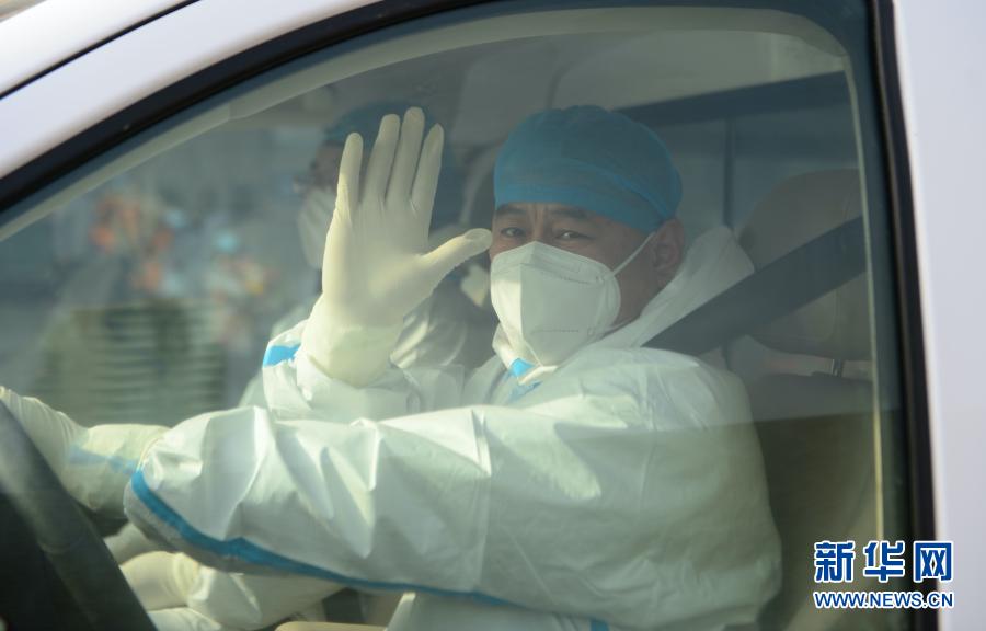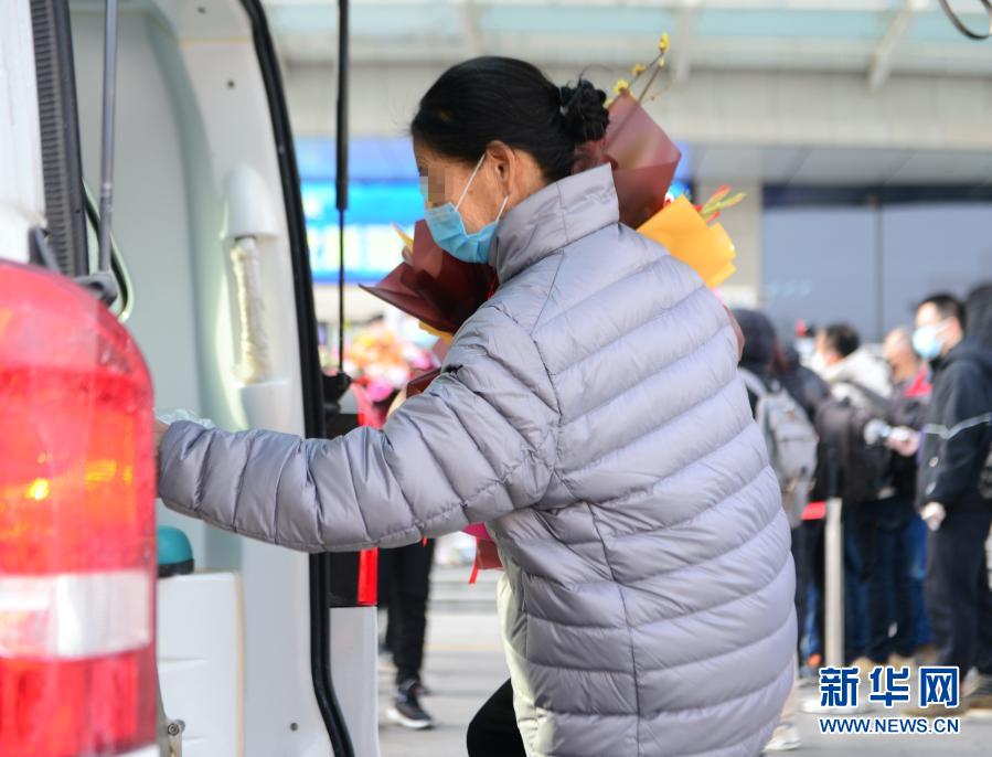1月14日,在河北省胸科医院,一名治愈出院的新冠肺炎患者乘车前往集中隔离点。 新华社记者 金皓原 摄
