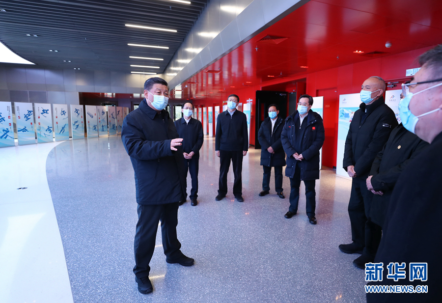 1月18日至20日,中共中央总书记、国家主席、中央军委主席习近平在北京、河北考察,并主持召开北京2022年冬奥会和冬残奥会筹办工作汇报会。这是19日下午,习近平在京张高铁太子城站考察调研。 新华社记者 岳月伟 摄