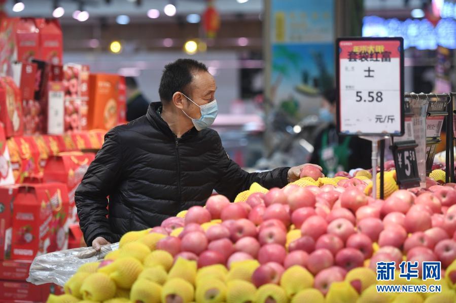 2月1日,市民在石家庄市裕华区一超市选购水果。